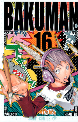 Temos aqui Bakuman, em seu 16° volume, e o unico dos lançados esse mês publicado no Brasil (pela JBC), a capa em si, tá bem legal, não sei como estão os capitilos atuais, mas de onde parei, não estava gostando muito da arte, espero que esteja melhor, enfim, o desenho de Obata continua bom.